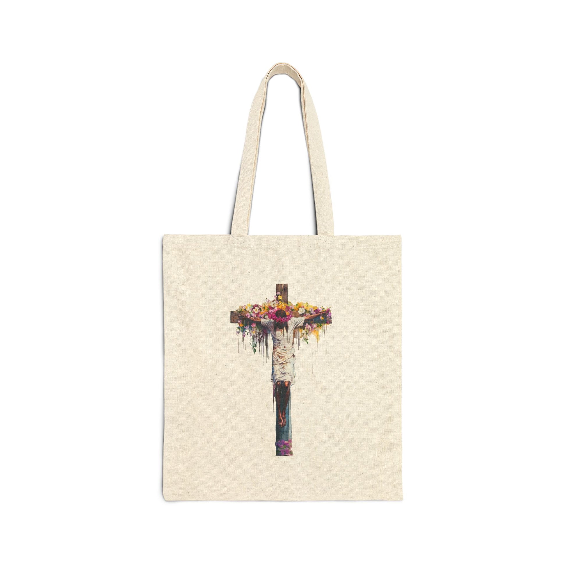 Rustic Floral Cross Cotton Canvas Tote Bag | Eco-Friendly, Reusable Shopping Tote, Book Bag, Easter Gift, Church Event